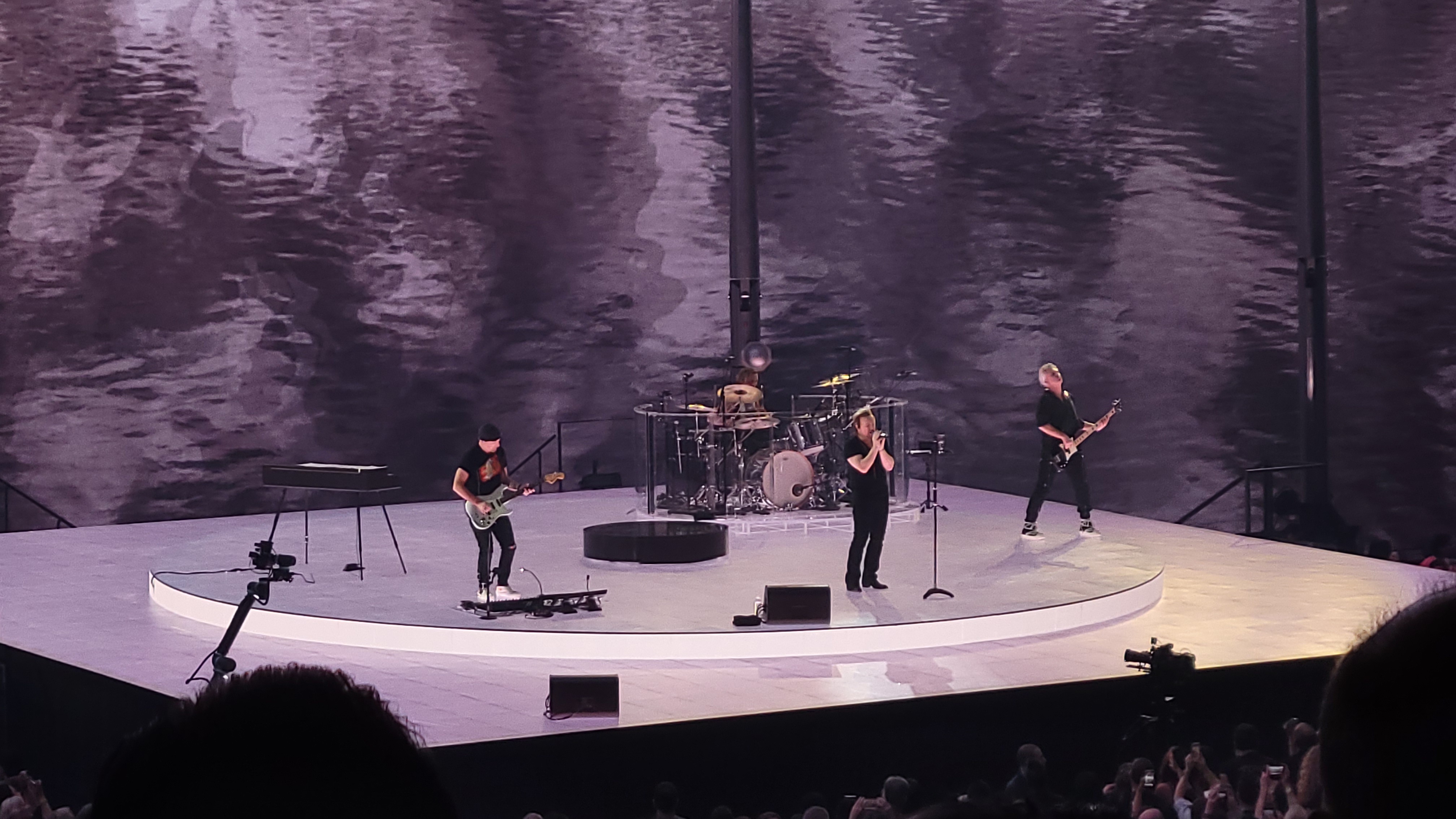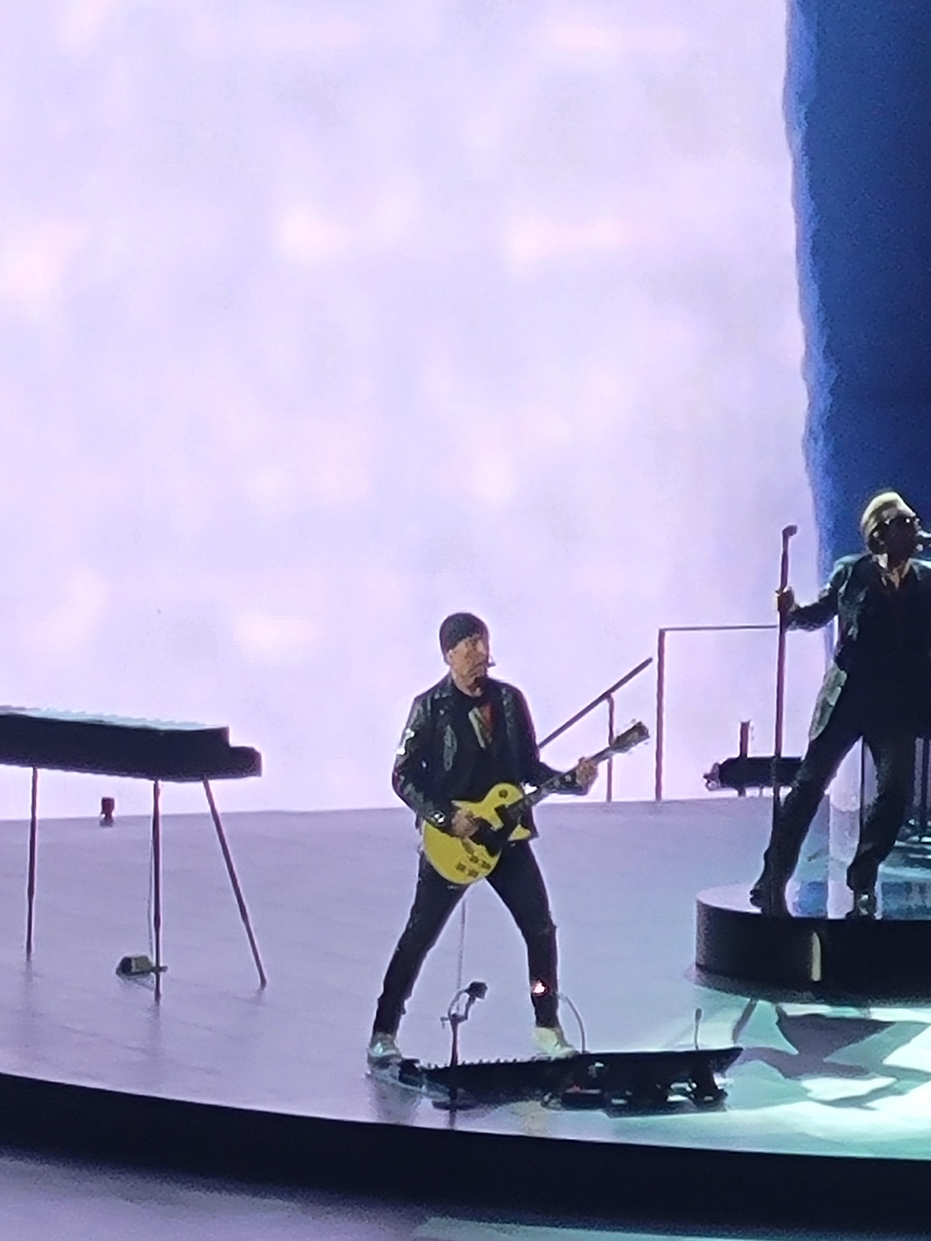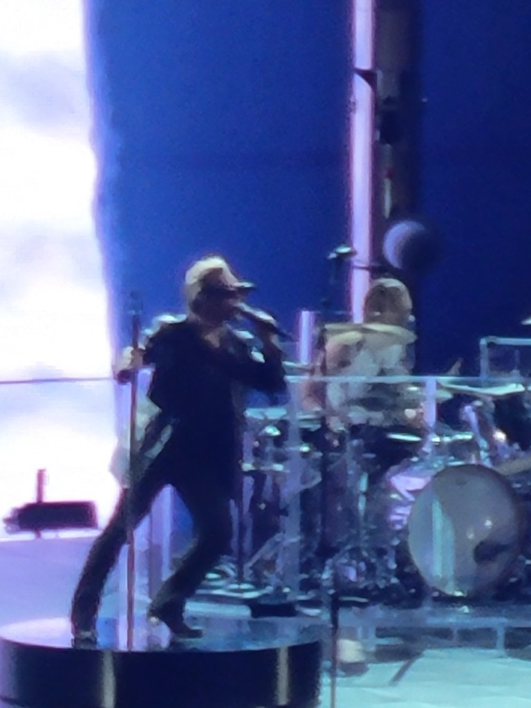 First and formost was the band. This was somewhere around my 12th or 13th time seeing U2. Things were a bit different, with drummer Larry Mullen Jr out of the lineup due to back surgery, but fill in drummer Bram van den Berg didn’t miss a beat, doing a fantastic job. The Edge effortlessly showed his prowess, Bono his usual charm, energy and humor, while Adam Clayton demonstrated his talent on bass, powering band through their 22 song set.