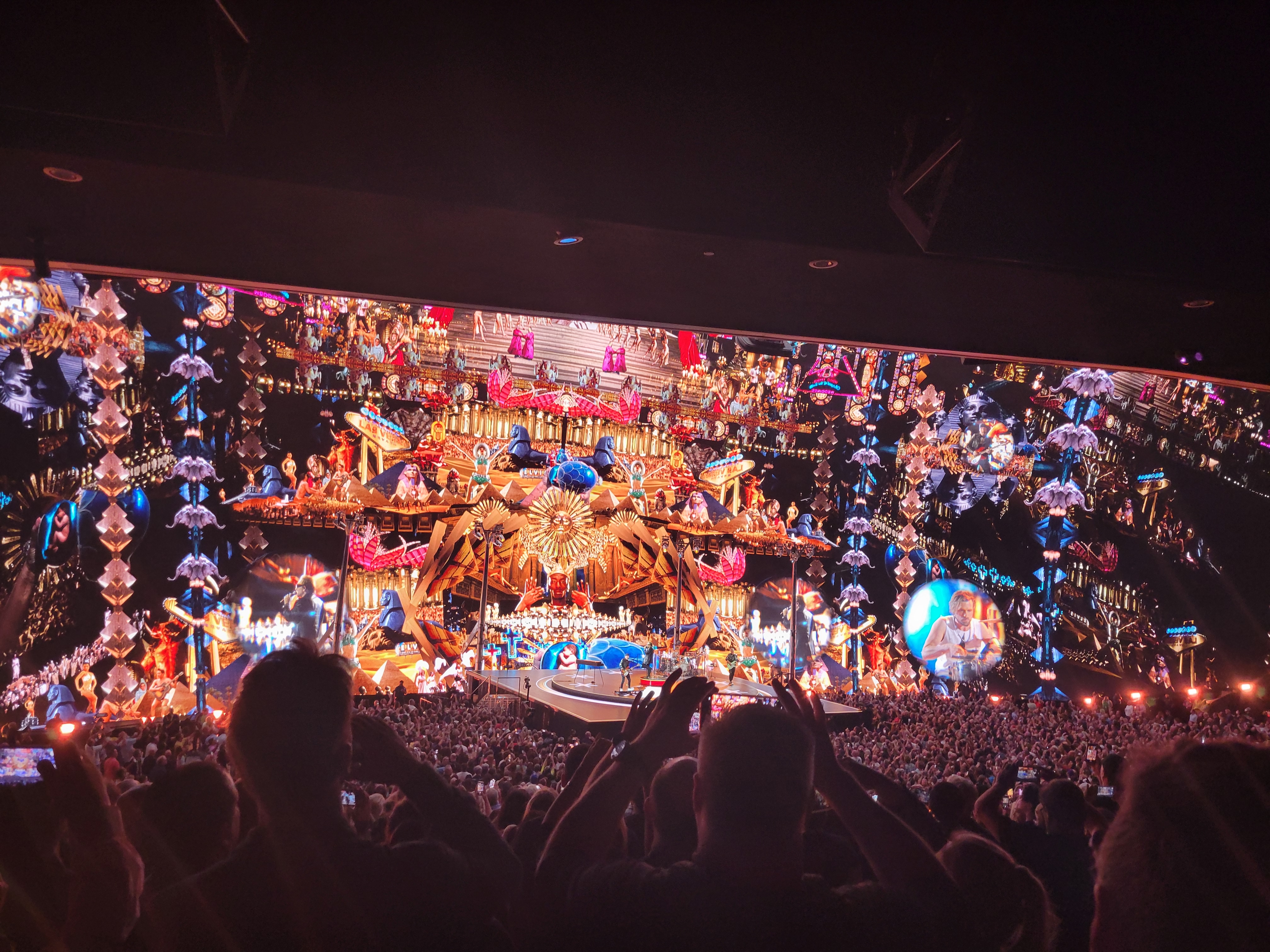 Now, onto Sphere itself. It was pretty impressive, with its wrap-around screen on the inside and outside of the building. The visuals were stunning at times, even making me feel as though the entire inside of the building was moving. It was dizzying, but super cool.